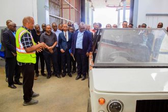 Biyani amempongeza mmoja wa Wahadhiri wa DIT, Georgia Rugumira anayeendelea na zoezi la kubuni Mzani utakaotumika kupima bidhaa mbalimbali.