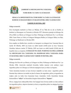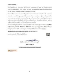 Uchaguzi Mkuu 2025 WATANZANIA 37,647,235 KUPIGA KURA OKTOBA 29, 2025 Editor October 28, 2025 Updated 2025/10/28 at 4:28 AM Share SHARE You Might Also Like INEC YAZURU WILAYA YA TANGANYIKA KUKAGUA MAANDALIZI VITUO VYA KUPIGIA KURA OMH YAWATAKA WATUMISHI WA UMMA KUSHIRIKI UCHAGUZI MKUU KIKAMILIFU INEC YATOA TAARIFA YA UCHAGUZI WA MADIWANI KATA YA MINDU,MZINGA NA KIRUA VUNJO MAGHARIBI INEC YATOA TAARIFA YA MAELEKEZO YA KISERA UCHAGUZI MKUU 2025 KUELEKEA UCHAGUZI MKUU 2025;JAJI OMARI AWAONYA WAANGALIZI WA UCHAGUZI Editor October 28, 2025 Share this Article Facebook TwitterEmail Print Previous Article INEC YAZURU WILAYA YA TANGANYIKA KUKAGUA MAANDALIZI VITUO VYA KUPIGIA KURA Leave a comment Leave a Reply Cancel replyYour email address will not be published. Required fields are marked *Comment * Name * Email * Website Save my name, email, and website in this browser for the next time I comment. Stay Connected Facebook Like Twitter Follow Youtube Subscribe Telegram Follow - Advertisement - Latest News WATANZANIA 37,647,235 KUPIGA KURA OKTOBA 29, 2025 Uchaguzi Mkuu 2025 INEC YAZURU WILAYA YA TANGANYIKA KUKAGUA MAANDALIZI VITUO VYA KUPIGIA KURA Uchaguzi Mkuu 2025 WAKAZI MILIONI NNE WAISHIO DAR ES SALAAM WANATARAJIWA KUPIGA KURA OKTOBA 29,2025 Kitaifa ELIMU NISHATI SAFI YA KUPIKIA YAWAFIKIA MAOFISA DAWATI NGAZI YA MIKOA NA H’SHAURI Nishati