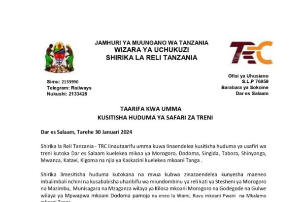 TRC YASITISHA SAFARI ZA TRENI MIKOA TISA